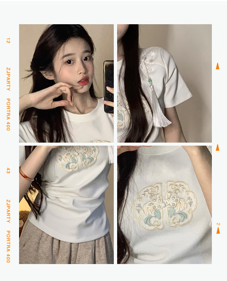 Embroidered Tassel Embroidered Tassel 刺绣流苏收腰T恤*2 Colors