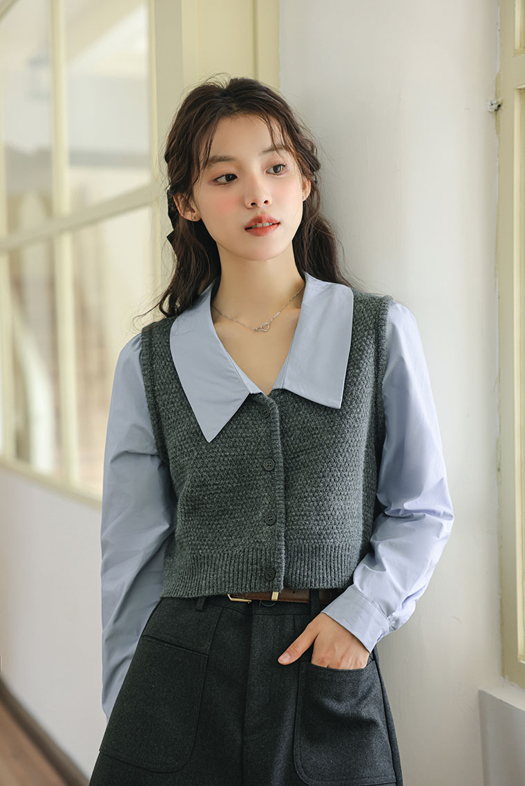 Khale Faux Two-piece Vest & Blouse 假两件马甲拼接衬衫