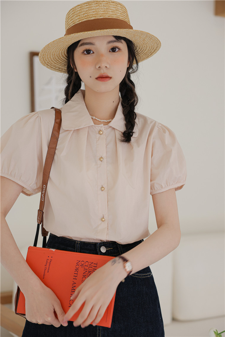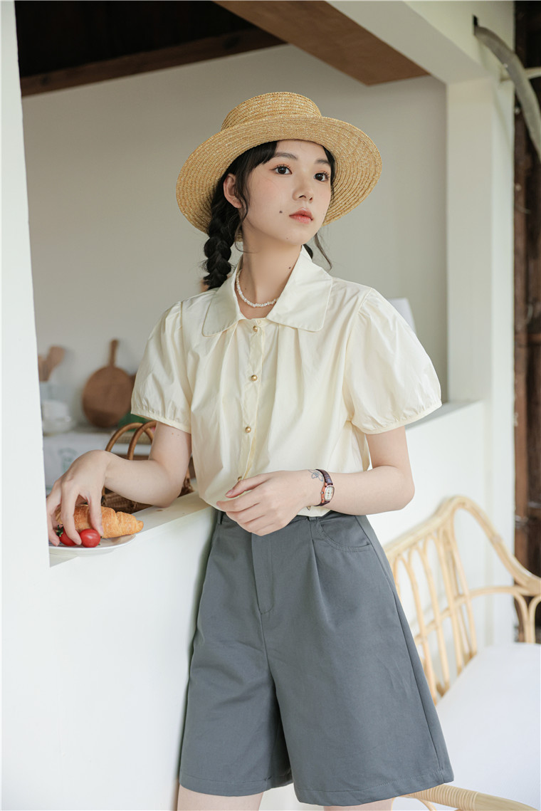 Metal Buttoned Doll Collar Blouse 金属扣娃娃领短袖衬衫*2Colors