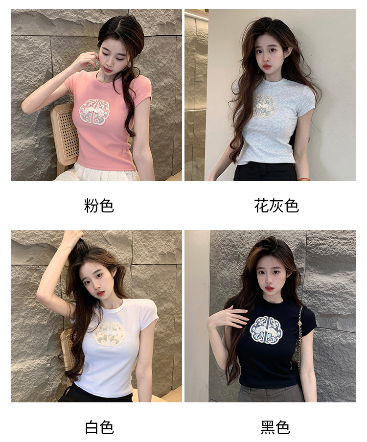 Ribbed Texture Embroidered Crop Tee 刺绣螺纹短款t恤*4 Colors