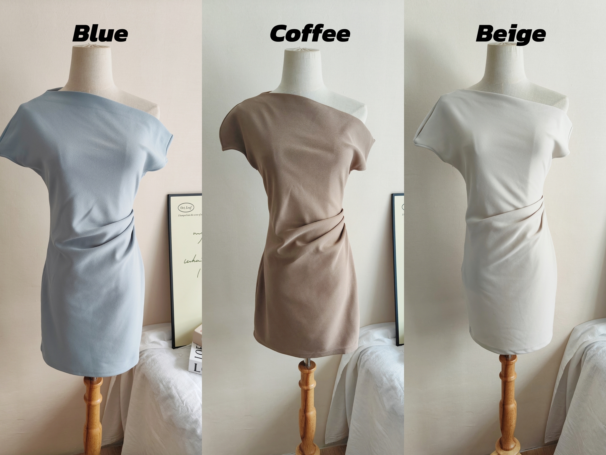 Sleek Off-Shoulder Dress 斜肩露背连衣裙*3 Colors