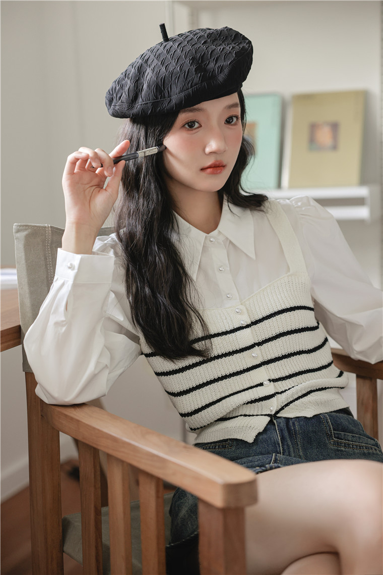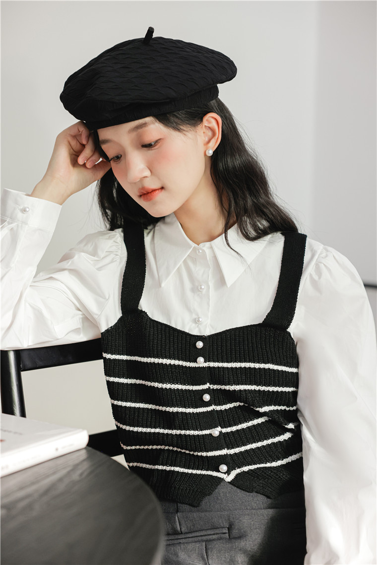 Stripes Knitted Vest Fake Two-Piece Top学院风~条纹针织背心假两件上衣* 2 Colors
