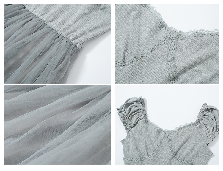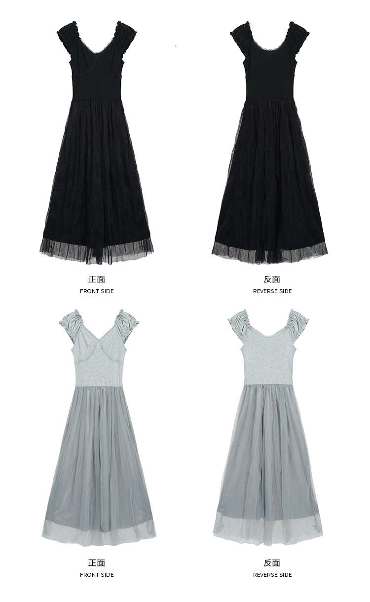V-Neck Tulle and Mesh Dress法式气质V领拼接纱裙*2Colors